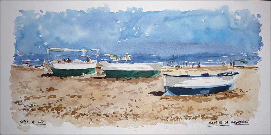 Acuarela de la playa de la Malvarrosa