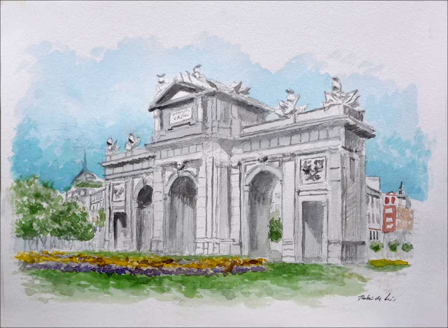 Cuadro en acuarela de la Puerta de Alcalá, Madrid.