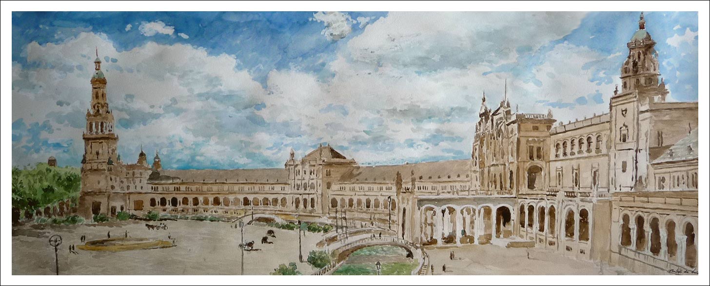 Cuadro en acuarela de la Plaza de España, Sevilla