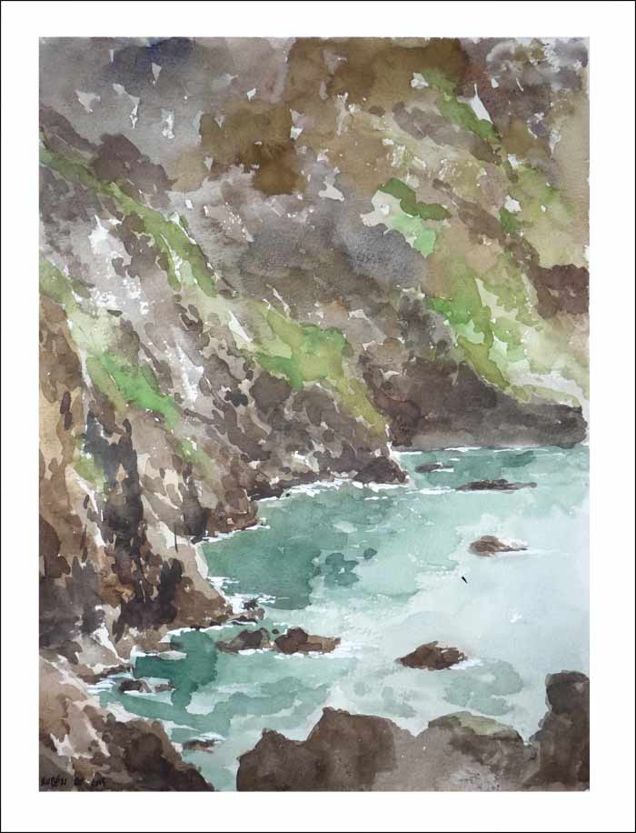 Una acuarela de los acantilados del Cabo Ortegal, que es uno de los lugares de costa más impresionantes de toda Galicia por la altitud de los acantilados.