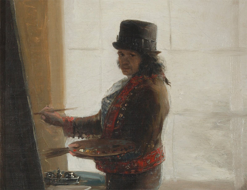 Sobre estas líneas podemos ver a un Goya joven con su larga melena con la ambición y valentía en el rostro, la boca apretada signo de determinación y perseverancia. Y la frente despejada, signo de inteligencia. Se pinta con la melena suelta, distinta a los demás, que le confiere un aspecto de genio total y algo imprevisible e indomable.