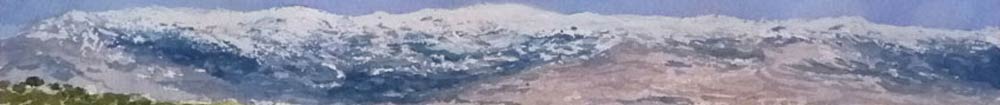 Esta sucesión de pequeños picos cómo el Pico de la Pala o el Cerro Perdiguera quedan totalmente iluminados por la tarde pero hubo que volver varios días a rodar ya que sólo se dispone de dos horas para pintar a esas horas del día y el sol se esconde deprisa a espaldas de donde se está pintando.