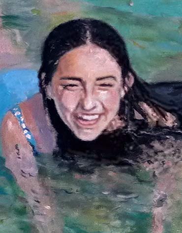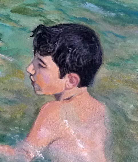 Cuadro al oleo de unos niños en el mar de Jávea.