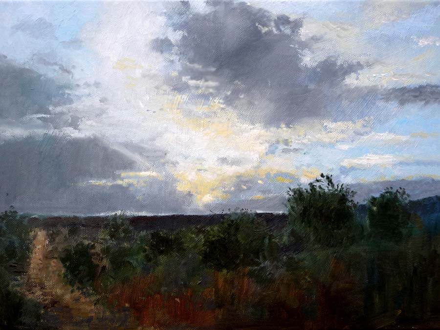 Rubén de Luis | Cuadro de un anochecer en un olivar