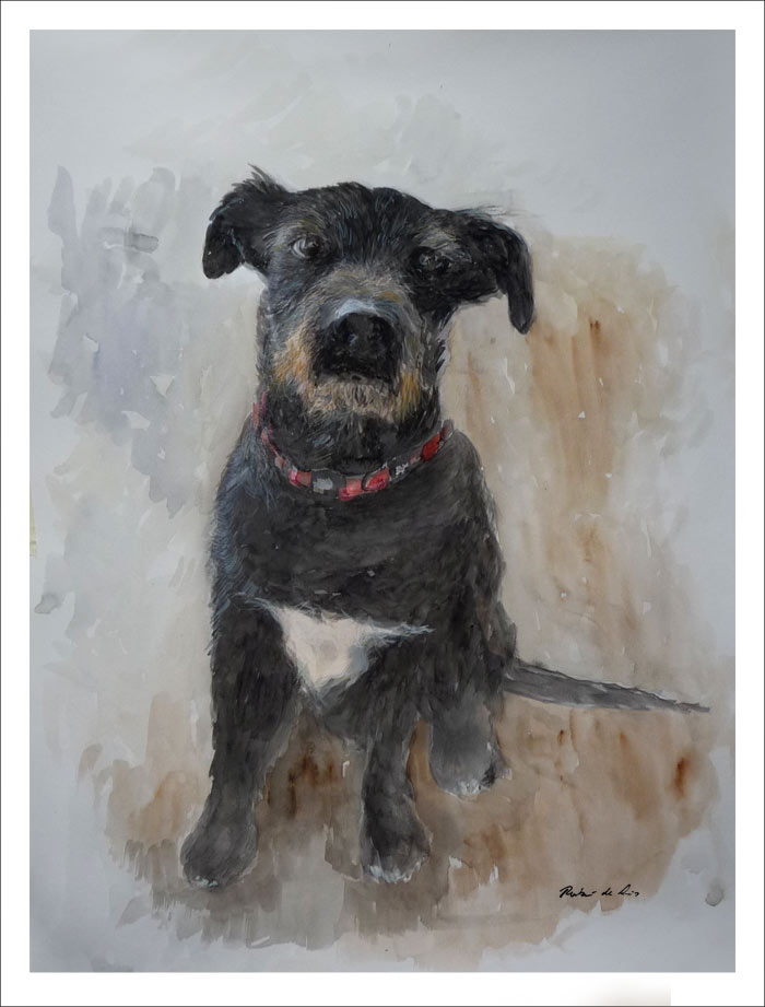 Un retrato de un pequeño perrito con el nombre de Nico que he pintado por encargo a partir de una imagen que he recibido.
