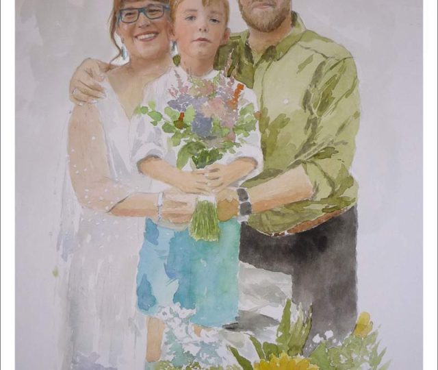Un retrato en acuarela de una pareja de novios pintado por encargo a partir de una foto